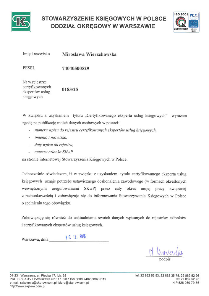 Nasze biuro rachunkowe współpracuje z małymi i średnimi przedsiębiorstwami o różnej formie prawnej. Gwarantujemy profesjonalną obsługę księgową z zachowaniem obecnie obowiązujących przepisów prawno- podatkowych. Reprezentujemy godnie Państwa interesy przed urzędami i podczas kontroli skarbowych.